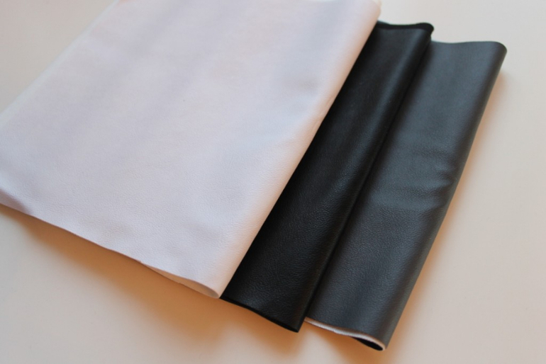 Отрезы искусственной кожи, белый, черный, серый.