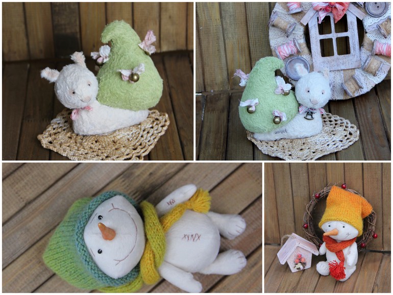 Это Улитка тедди Елка и Снеговик Плюшик.