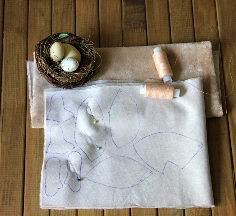 Плюш, флис,лен, бязь нужно уплотнить флизелином. Прикладываю клеевой стороной к изнанке ткани и приклеиваю утюгом. Стараюсь везде проклеить хорошо, подолгу задерживаюсь на одном месте.