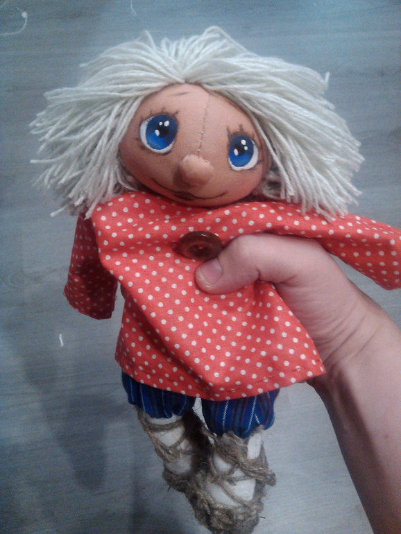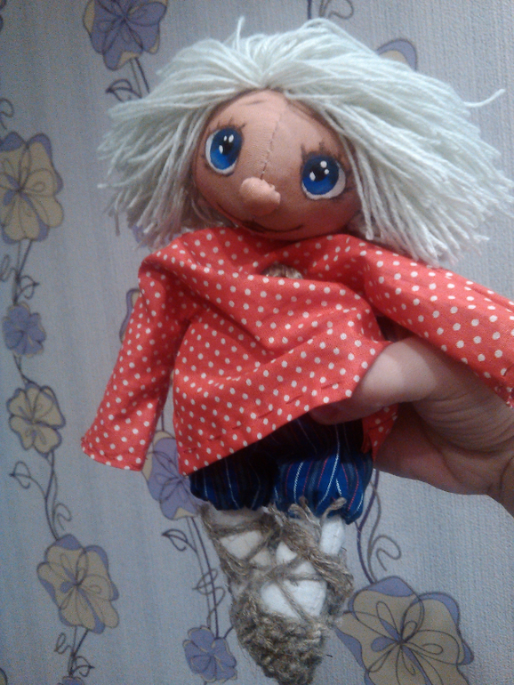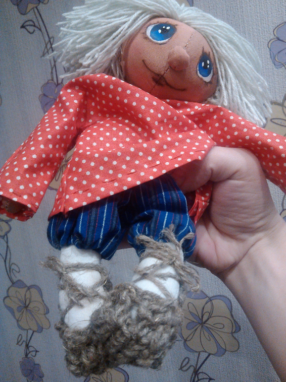 Вот такой озорной домовёночек родился у меня недавно, и сразу напросился к подружке в качестве подарка на новоселье!
