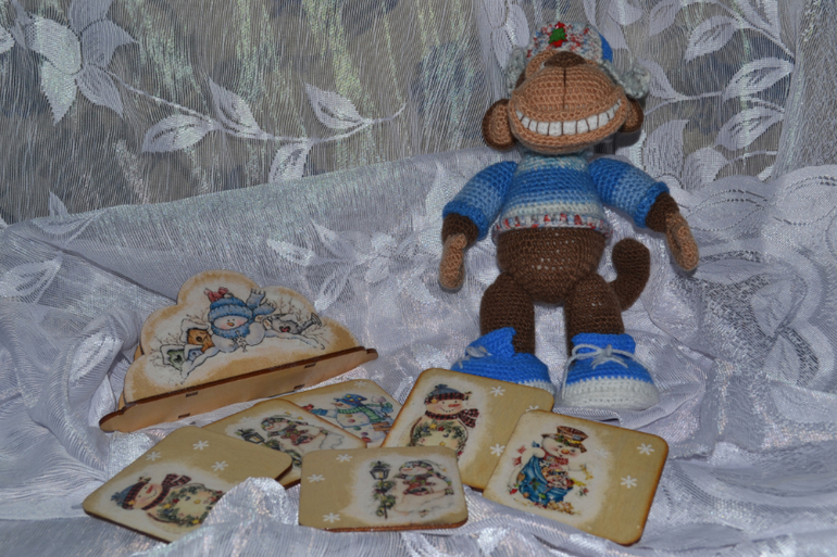 еще и тема моя любимая снегирики!!! Обезьянка отпадная, Станислав сегодня с ней в сад ушел.