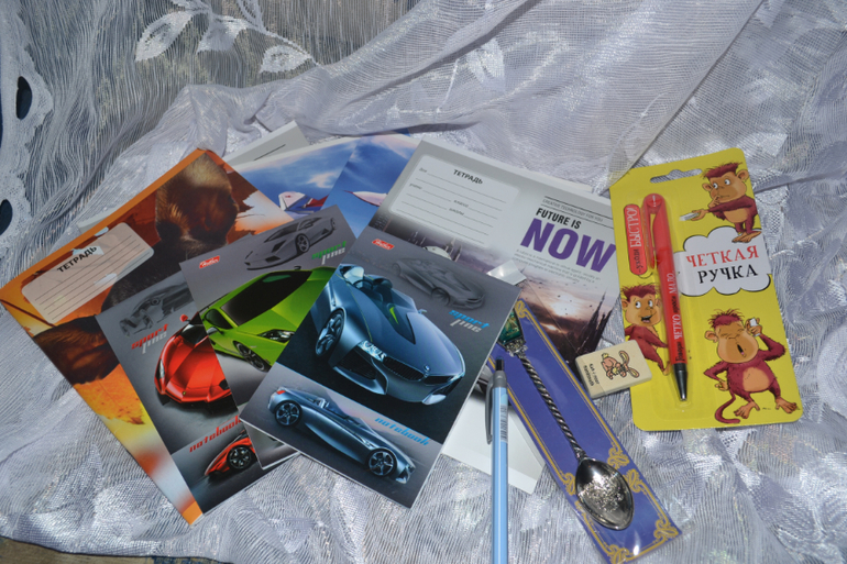 это подарочки старшему сыночку, все очень актуально и классно, еще ложечка сувенирная с городом.