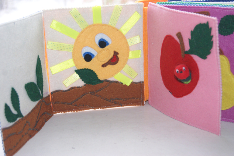 Продажа работ и предложения от рукодельницПродам развивающую текстильную книжку "Голодная гусеница". Книга выполнена из фетра. Состоит из 14 страниц. Имеет 8 съемных деталей, большую бабочку и объемную гусеницу. Текст произведения. Сумочка для хранения. Цена 2500 рублей + пересылка наложенным платежом