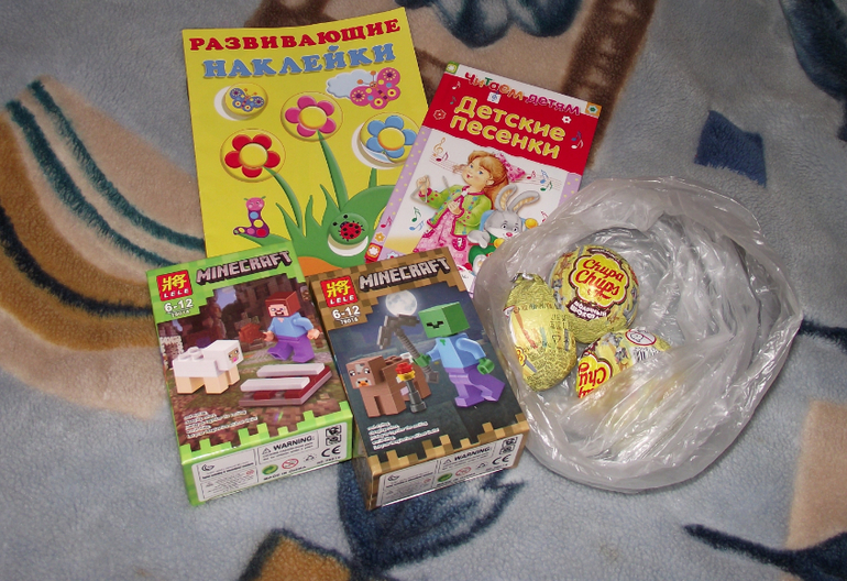 Начну с подарочков для малышни) книжечки, сладости. иииииии майнкрафт!!!! вот за это нижайший поклон. детки просто помешаны на этой игре сейчас, а у нас ничего подобного не видела. Спасибо от них большущее