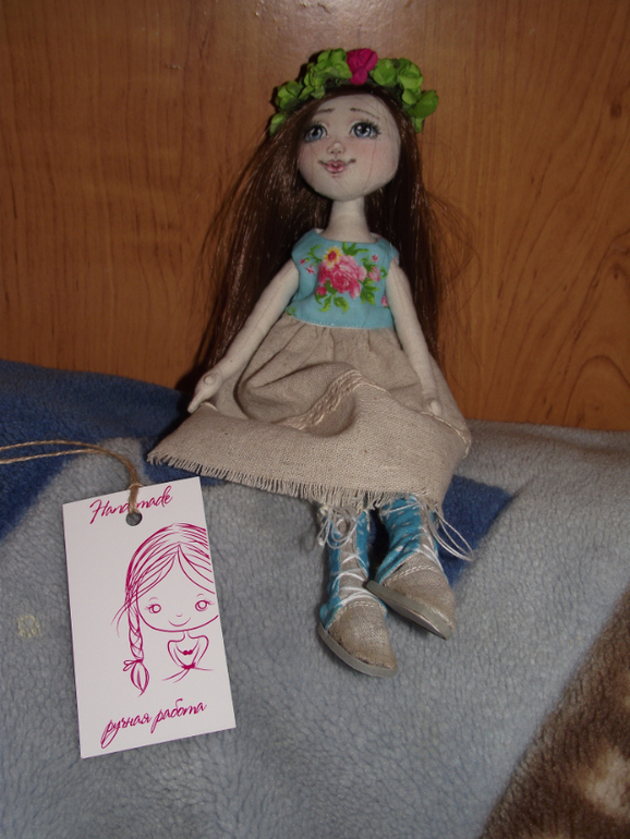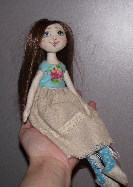Ну а теперь сама весенняя красота!!! Очень милая куколка. и как оказалось она такая масечка, когда видела её на фотке думала она большая, а тут такая прям миниатюрная, можно на ладошку посадить))) Алёночка, у тебя золотые ручки -одно удовольствие держать такую работу в руках и она будет украшать теперь полочку с кукляшками)