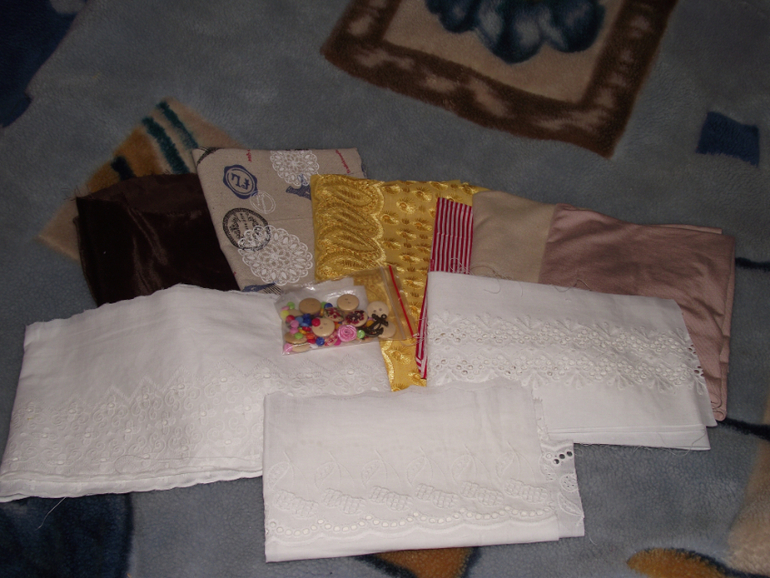 Тканюшки и шикарнейшее шитьё, я уже прям знаю куда его пристрою изрядно поиздеваясь и состаря)) и куча разных пуговичек!