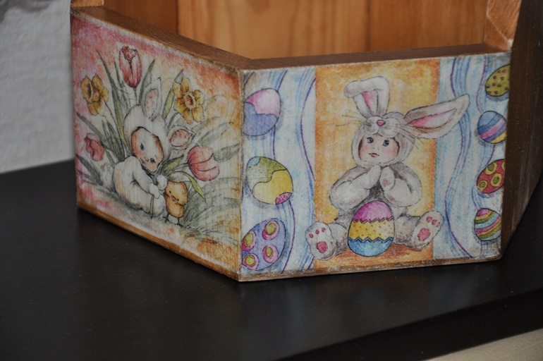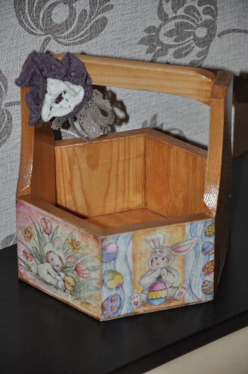 Начну я с Пасхальных рукоделок. Людочка сотворила корзинку пасхальную и очень классного зайку теддика, не верю своему счастью, что они теперь мои! Корзинка однозначно будет украшением нашего праздничного стола. Она очень классная!