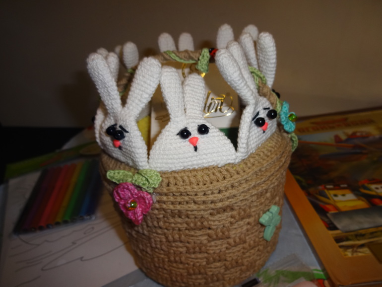 Главный шедевр - Надюшина вязаная корзиночка с пасхальными зайцами :)
