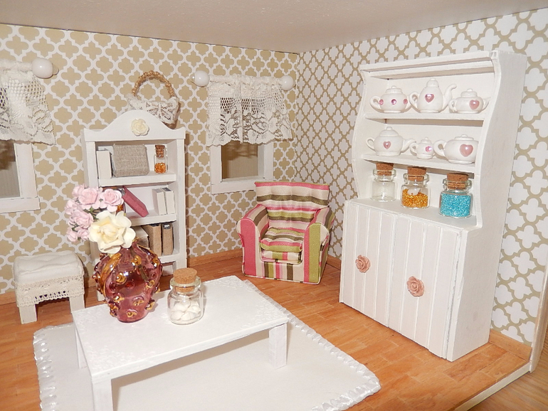 Но в процессе работы многое поменяла, додумала сама. А книжный шкафчик, буфет, кровать и прочее - придумала и нарисовала сама.