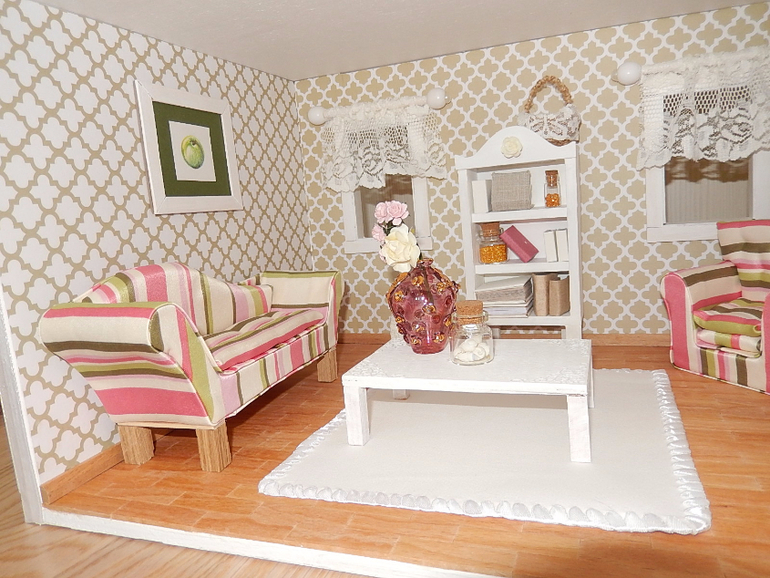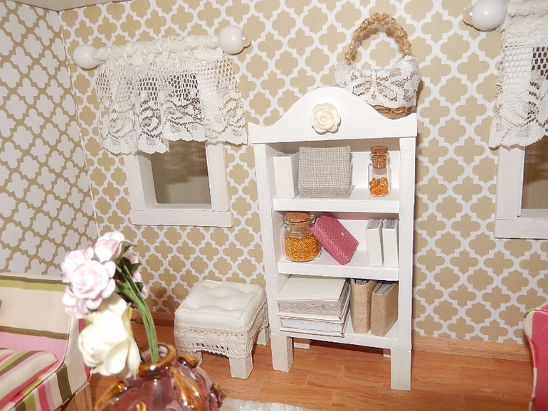 Кукольная миниатюраВсем здравствуйте! Недавно увлеклась темой кукольной миниатюры и наконец решила попробовать сделать кукольный домик своими руками, "с нуля" (с деревянными деталями муж, конечно, помогал). Домик в масштабе 1:12, высота около 50 см.