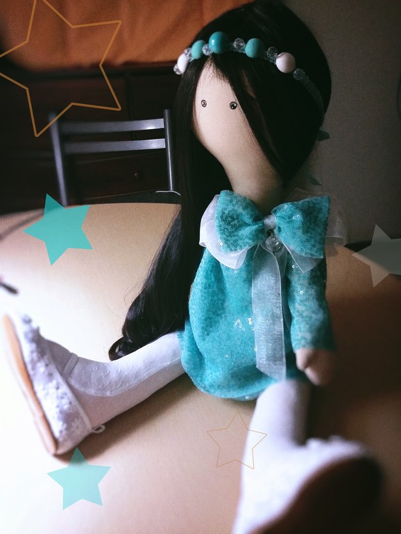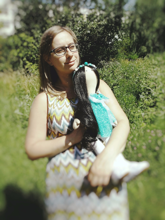 Девочка долгоигралась аж два месяца. Тк я недошив ее, взялась за вязание пледа, сборы и подготовку к появлению второго малыша) Сначала она была в розовом, но я все переиграла)))