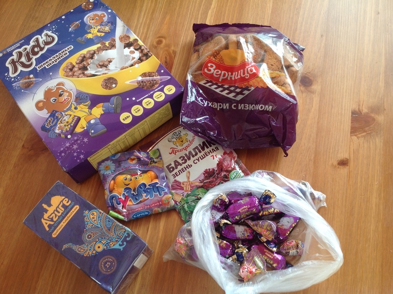 Обмен подаркамиПолучила вчера от Гуля фиолетовую посылочку! И все вкусное, и все нужное и все фиолетовое! Гуля, спасибо большое!