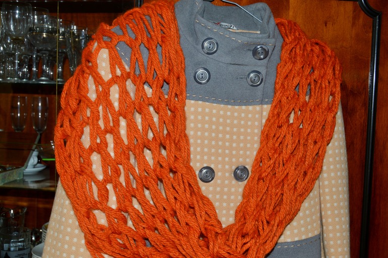 а из новой пряжи я уже связала вот такой снуд, без спиц и крючка, на руках, очень давно хотела попробовать, да все пряжи подходящей не было. СПАСИБО Снегурочка тебе огромное за такие чудесные, душевные подарочки!!!!