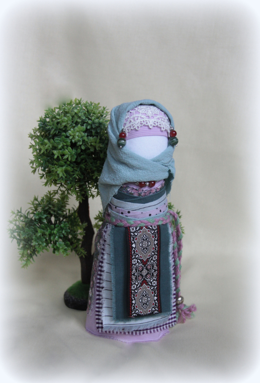 Невеста - кукла-оберег для девушки, желающей выйти замуж, а так же оберег для счастливой семейной жизни. На шее у нее семь разноцветных платочков, семь качеств, которые девушка хочет видеть в своем муже.