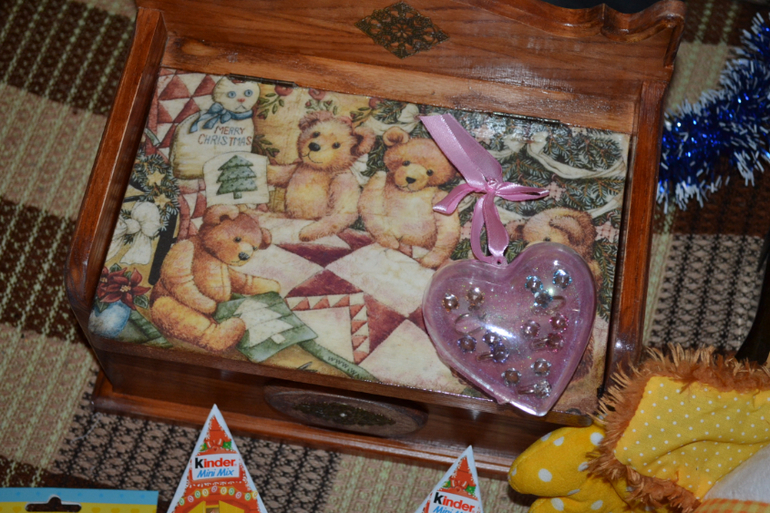 а мишутка какой к нам доехал супер!!!!!!!!!!!такой милаш!!!!!!!!!!!! и Коробо- как раз то что не хватало))а то конфеты прятать не куда))муж ругается,что всегда не на месте))теперь будет знать))