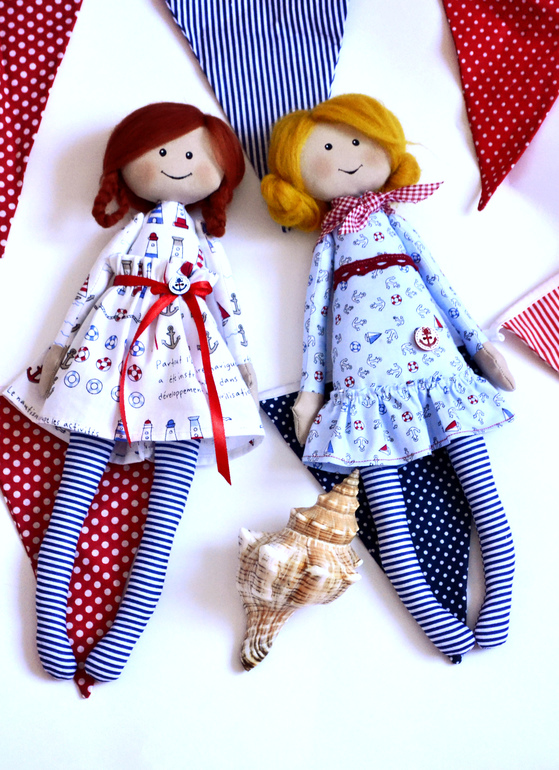 Текстильные куклы (кроме вальдорфских)На улице морозно, весной даже и не пахнет, а у меня морские мысли в голове... Вот такие получились подружки, рост около 33 см