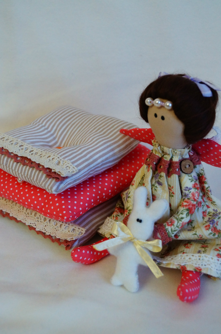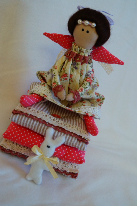 ТильдыНедавно купила тканюшку и поняла, что быть еще одной принцессе на горошине. Рост около 23 см., рост заи - 7 см. Принцессу можно снять с подушек и пересадить)