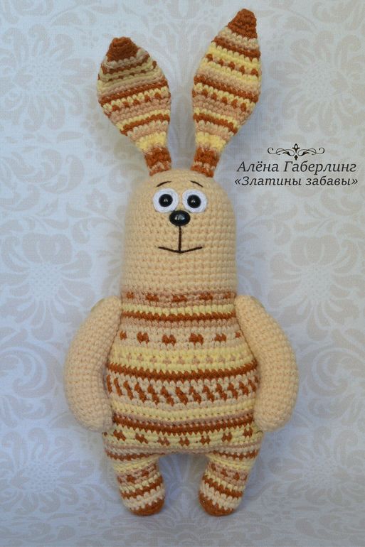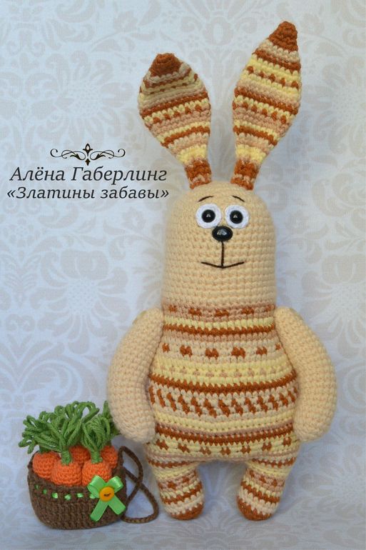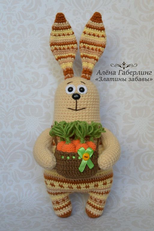 Продажа работ и предложения от рукодельницАвторский пузатый жаккардовый заяц Мохан очень любит морковь и готов есть ее целый день напролет.