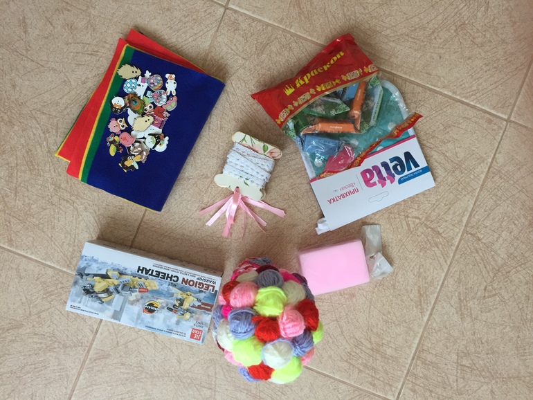 Фетр и пуговки отправились в хомячью норку, конструктор сын сразу же собрал ) деревце с клубочками красуется на полке!