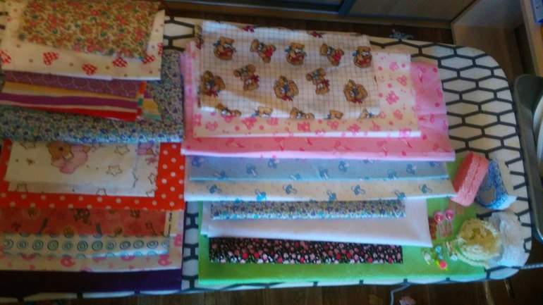 Продажа работ и предложения от рукодельницЛежат без дела материалы. 100% германский хлопок (сейчас цены в два раза на него выросли), два отреза бязи РФ, белая бязь по ГОСТу для окрашивания и шитья тел (1 п.м.). Готовое платье для сонного ангела, кружево, ленты, маленькие пуговки, пришивные кнопочки, миниатюрные мишки, деревянная лейка, рабочий зонтик, бумажные цветы и полубусины клеевые. Две заготовки для шитья ангелов тильда (полностью готовые. Сшить по контуры, вырезать, вывернуть и набить). Пряжа букле для волос. За всё прошу 2500 руб. При очень срочной покупке отдам за 2000 руб + почтовые. Отправлю в день оплаты почтой РФ. Под катом подробнее.