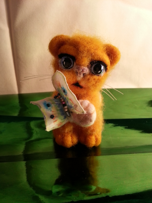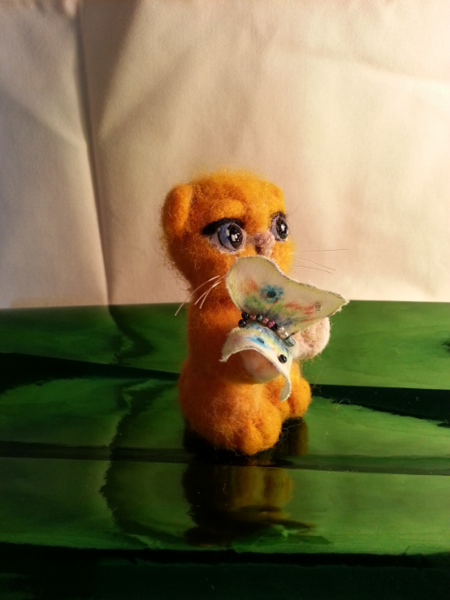 Войлок и валяниеЗнакомьтесь Милли-7 см!Новая работа нашего автора Виктории.Кордочес Австралийский,текстильная бабочка с бисером,глазки бусинки -расписаны художественным акрилом.Бабочка тонирована художественной пастелью.