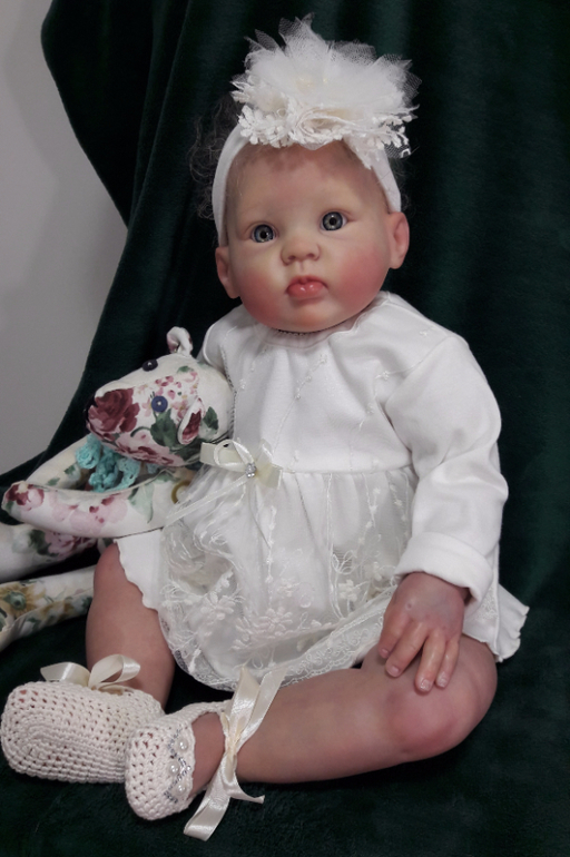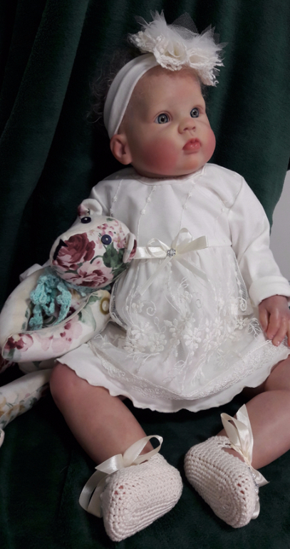 Молд Cuddles,by Donna RuBert (9 Month Old). Расписана красками Генезис с послойным запеканием.Ручки и ножки 3/4.Прорисованы венки.Волосы козочка супер премиум,очень мягкие и вьются.Глазки реал акрил.Цена 20 000 р. В подарок два комплекта одежды,шапочка,браслетик ,повязки на головку 3 шт.,пинетки,туфельки,любимая игрушка "розовый зайчик",бутылочка и пледик. Свидетельство о рождении и памятка по уходу.