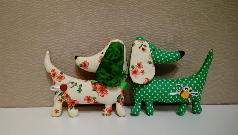 Здорово! Особенно в клеточку мне понравилась! Это таксы? Выкройку чтобы найти.