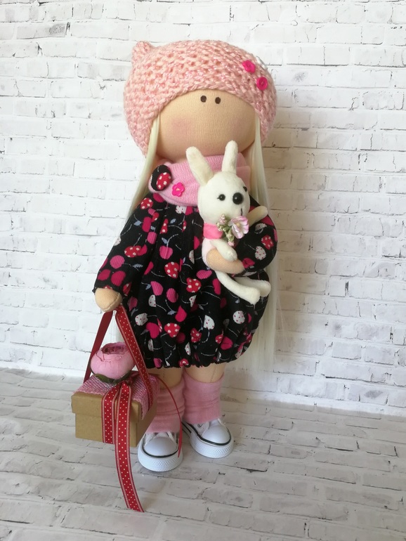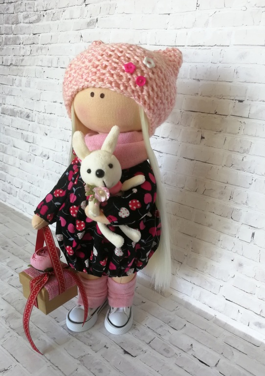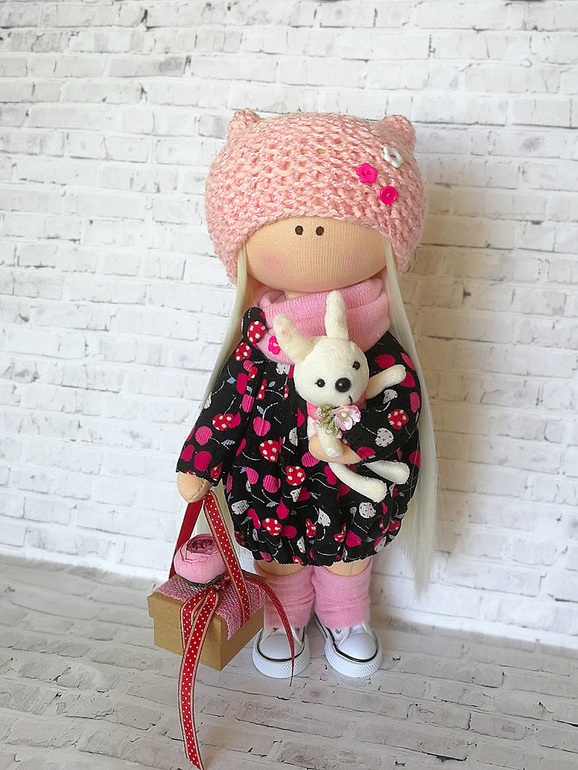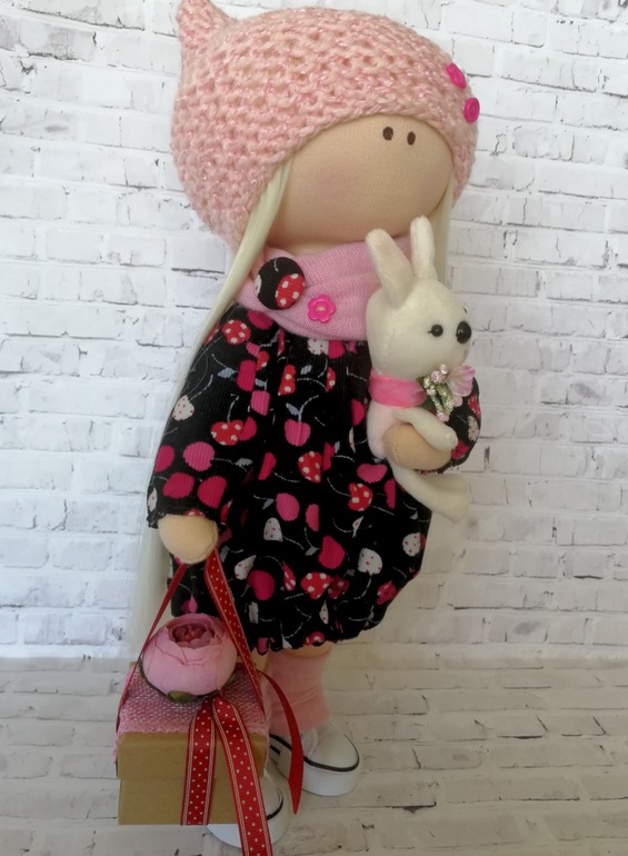 Вот такая крошка сшилась на днях. Ну или не совсем крошка - все-таки целых 33 см рост у девчонки :) Захотелось уйти от пастельных расцветок весны к чему - то более яркому и насыщенному. Мне нравится, как по черному микровельвету рассыпались спелые вишенки- сочно и позитивно :)