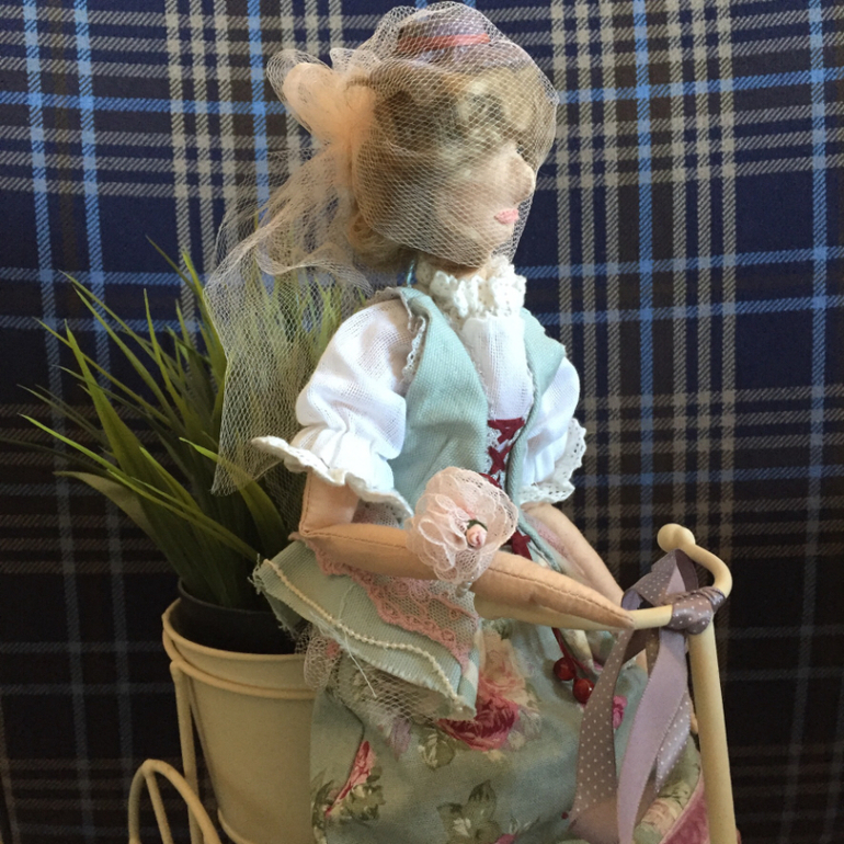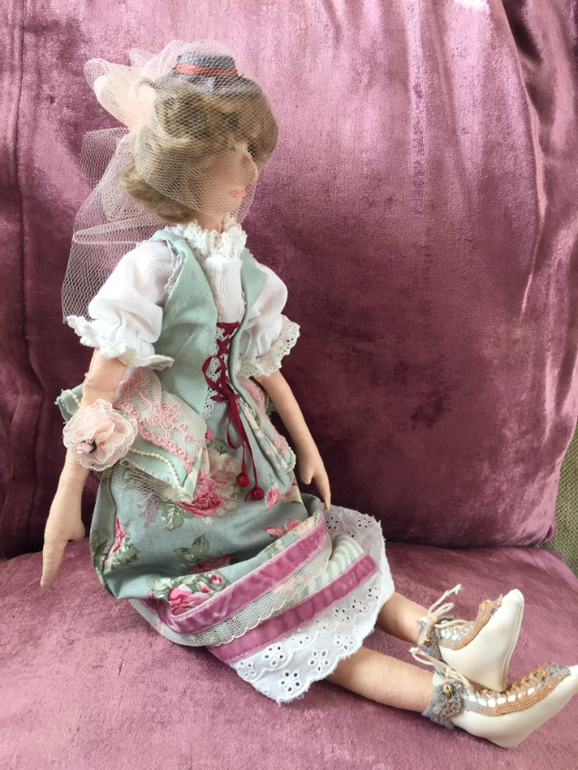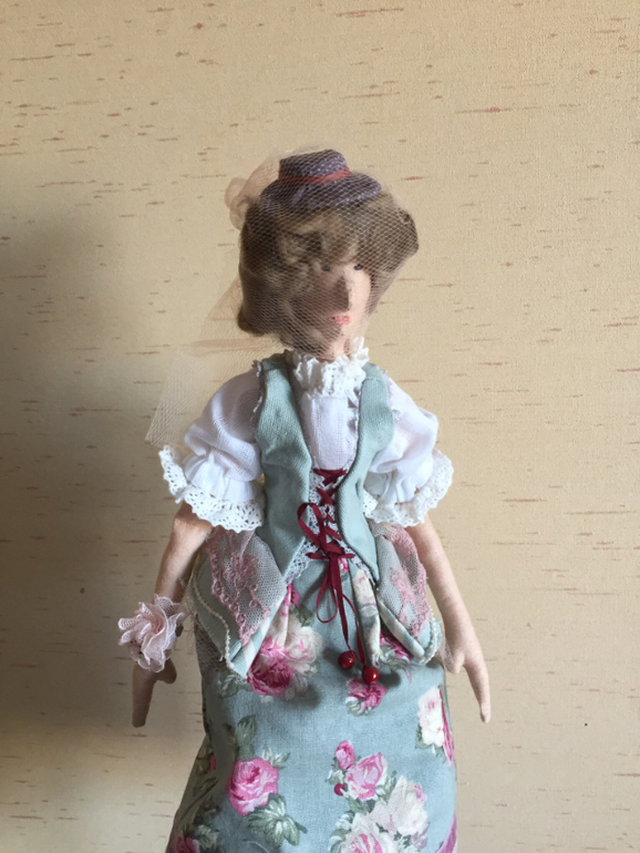 ТильдыКуколку так назвала, тк шила ее после просмотра фильма про баварского короля Людвига. Была у него подруга, австрийская принцесса ))). А я как раз с подружками собиралась в поездку в Мюнхен. Вот и получилось...Элизабет спешит в Баварию в этой куколке попробовала вышить губки.
