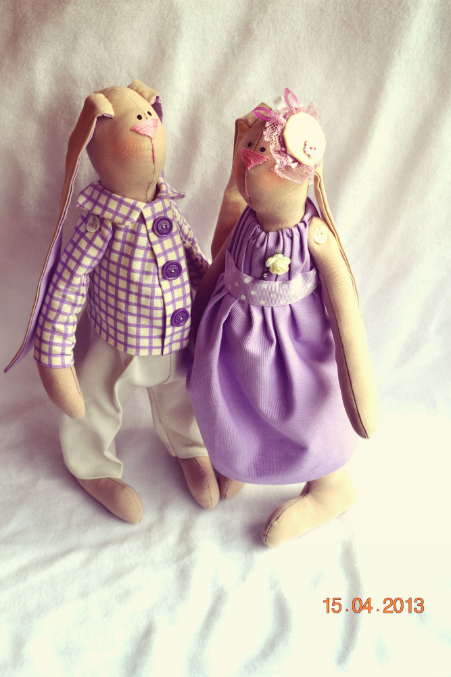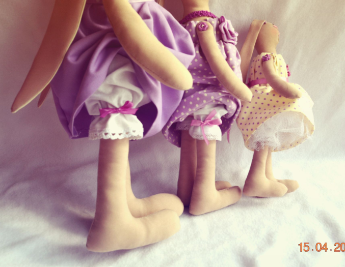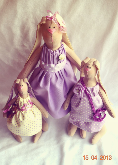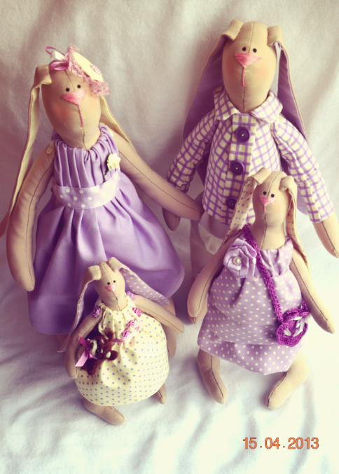 ТильдыДружная семейка зайчиков. Родители примерно 40 см, дочки-зайки 28 и 23см. Полностью ручная работа.