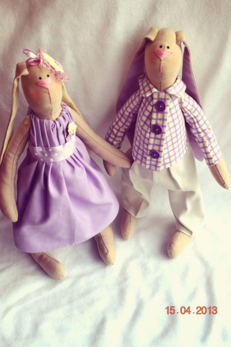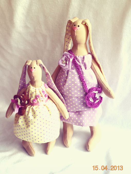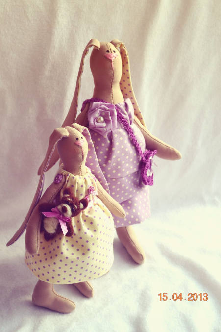 Дружная семейка зайчиков. Родители примерно 40 см, дочки-зайки 28 и 23см. Полностью ручная работа.