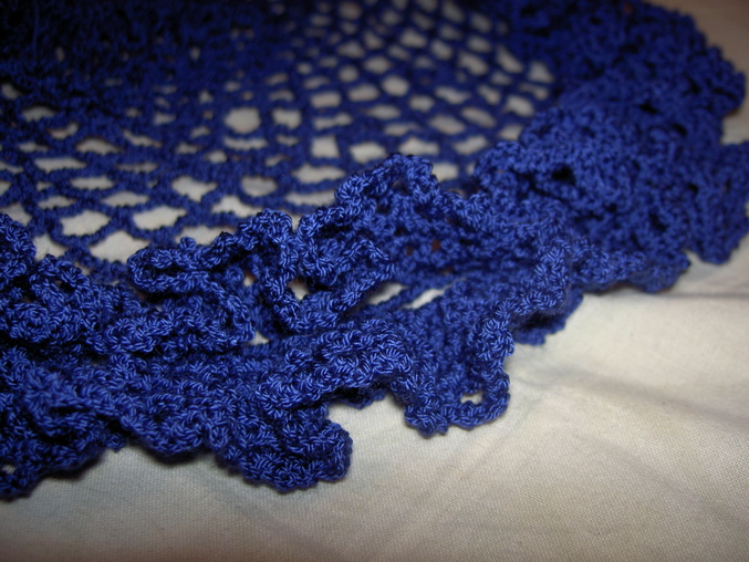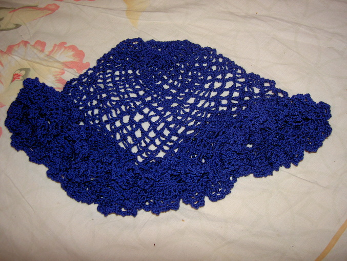 Голубое предыдущее было, а на зеленое у меня уже есть прикидки, какое платье вязать )) Так что это будет синим, тем более, две рюшки уже готово. Перевязывать силы воли не хватит ))