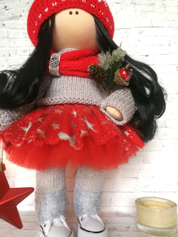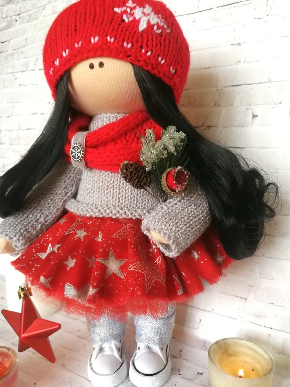 Вся немножко сверкает, потому что свитерок с лёгким блеском и звёздочки на юбке мерцают :)