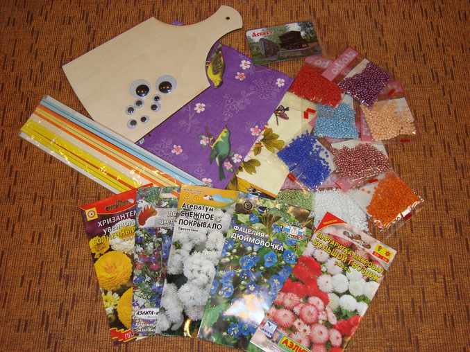 Радость хомяку: дощечка с салфетками для декупажа, бумага для квиллинга, бисер, магнит и радость для любителя-садовода - семена;))))))