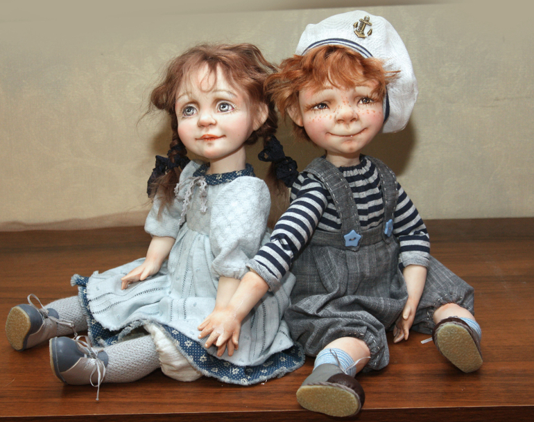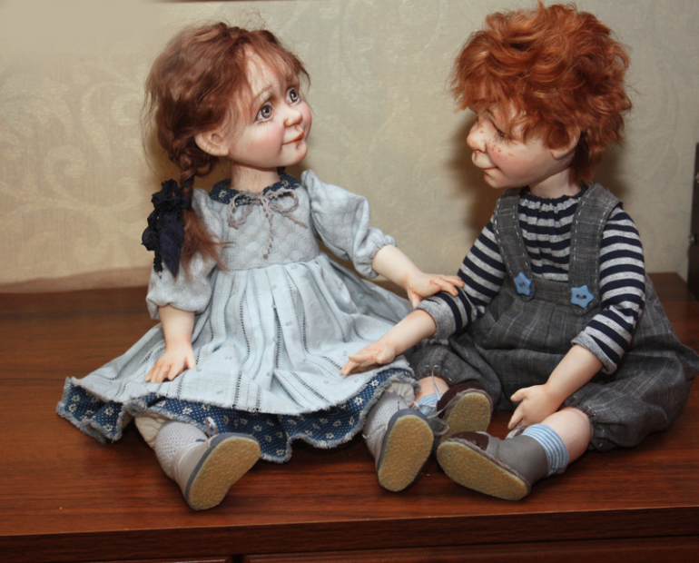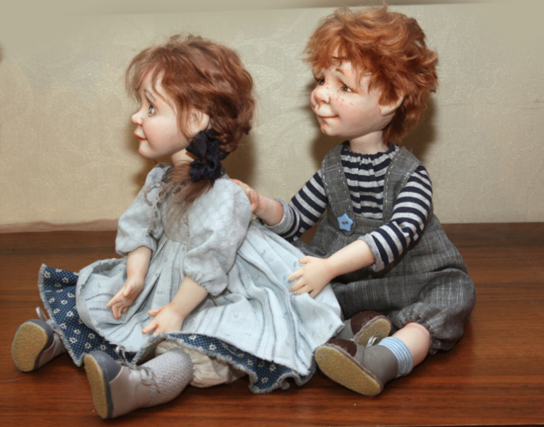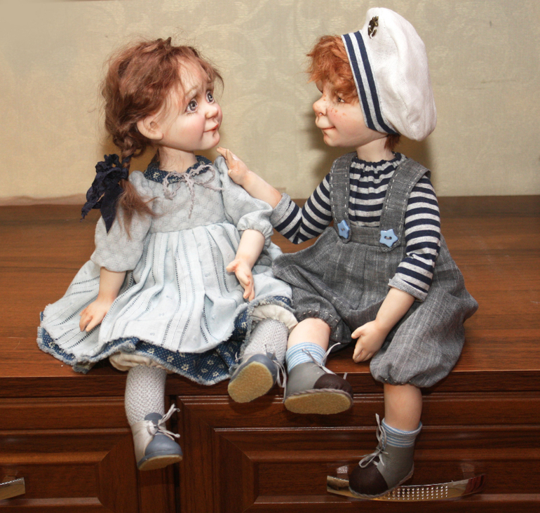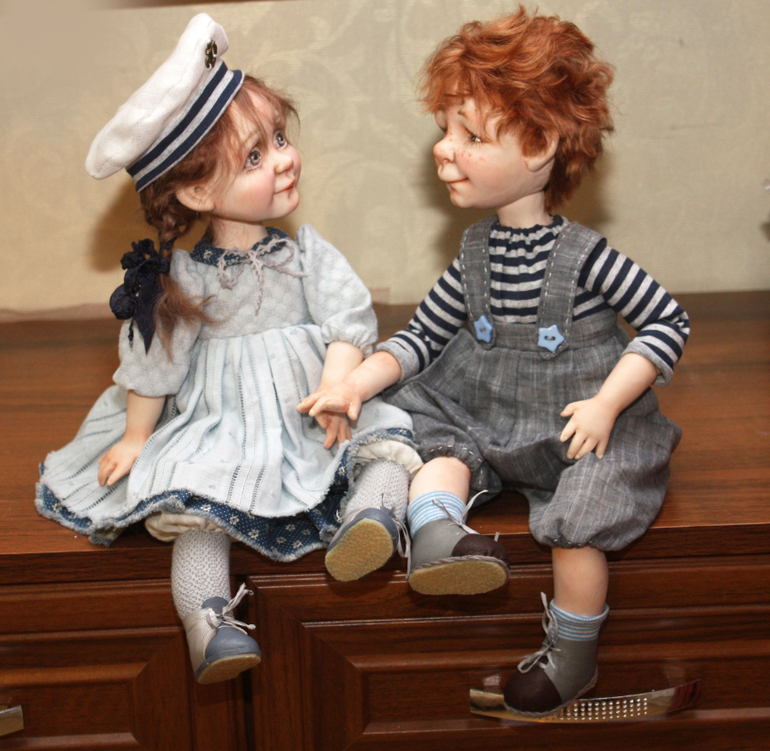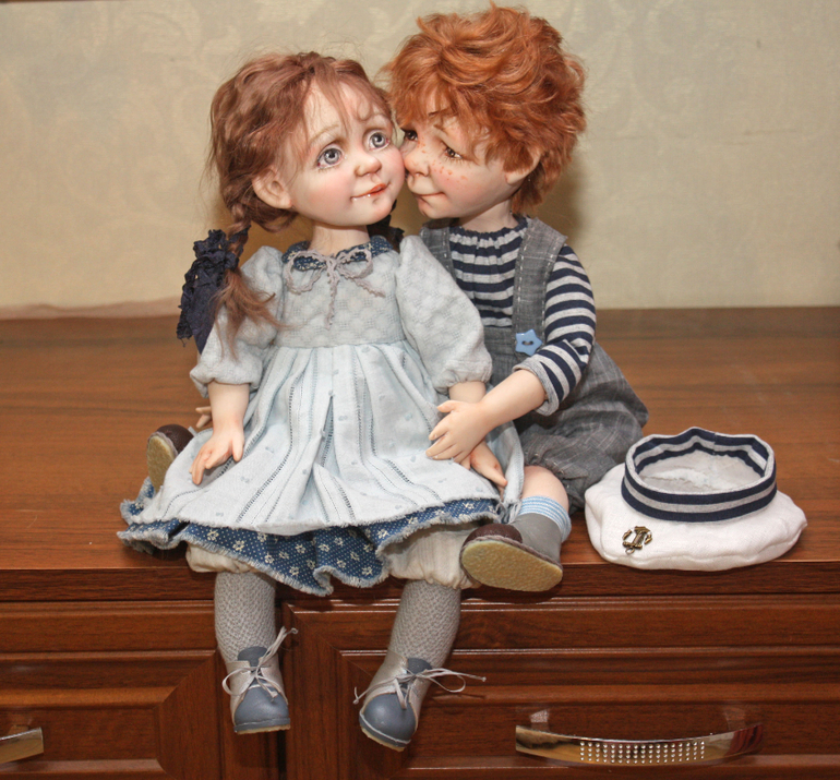 Куклы и игрушки из полимерной глины и других пластиков, а также из соленого тестаДелала друга для девочки,а тем временем ее удочерили и она улетает жить в Америку, мальчик пока остается со мной.. но ему очень грустно..придется делать для него новую подружку)))(под катом много фото сладкой парочки)