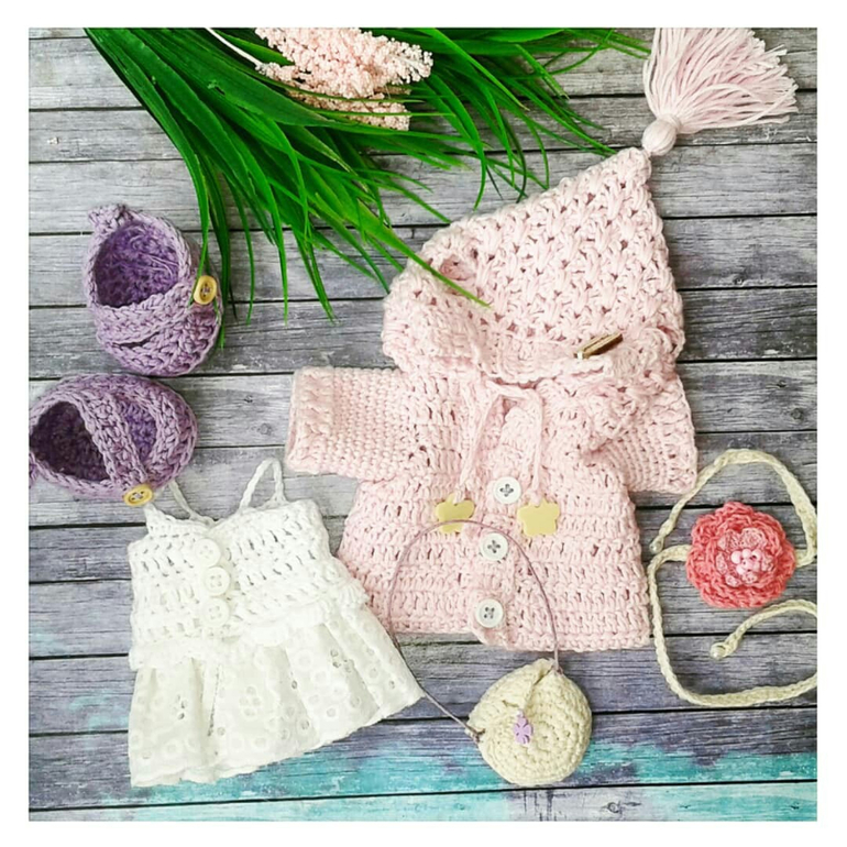 Аксессуары для кукол своими рукамиОдежка предназначалась в основном для вязаных мишек,которые уже пристроены.