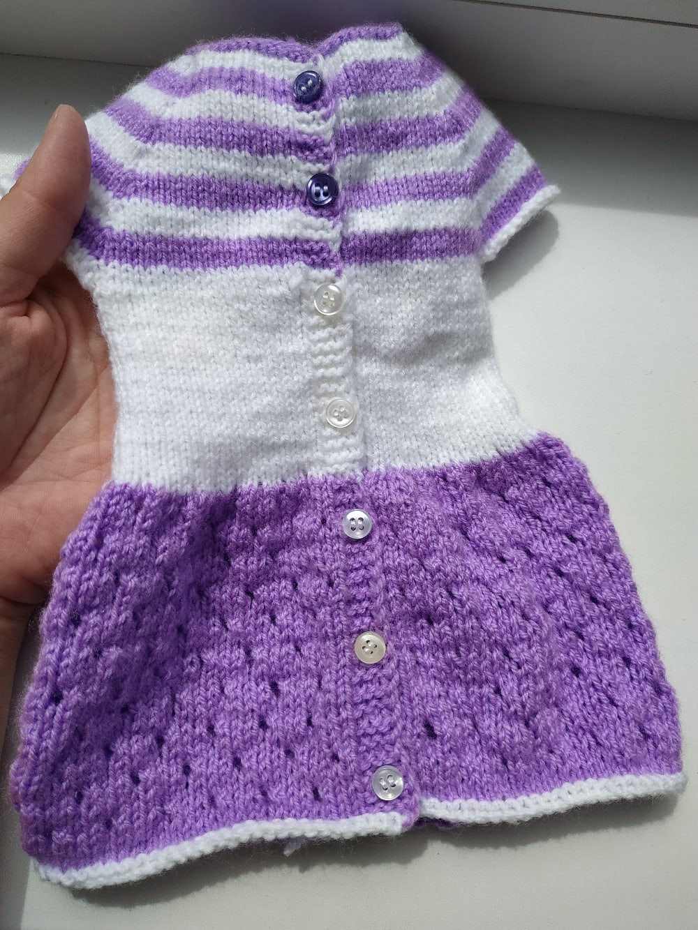 Для возвращения к привычным масштабам связала платьице на МХ. Всё как я люблю: спицы 0.8, мулине в три ниточки... впервые вязала на 0.8 вкруговую. Надо ещё потренироваться, но мой внутренний перфекционист доволен отсутствием швови требует выкинуть весь вязаный куклогардероб со швами и начать заново... памагите!