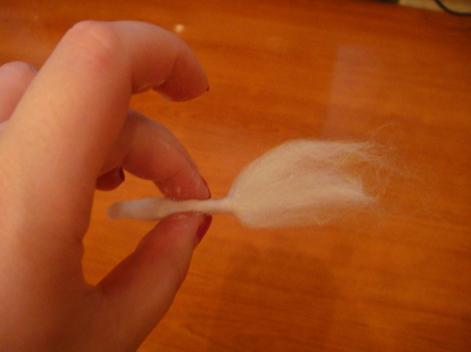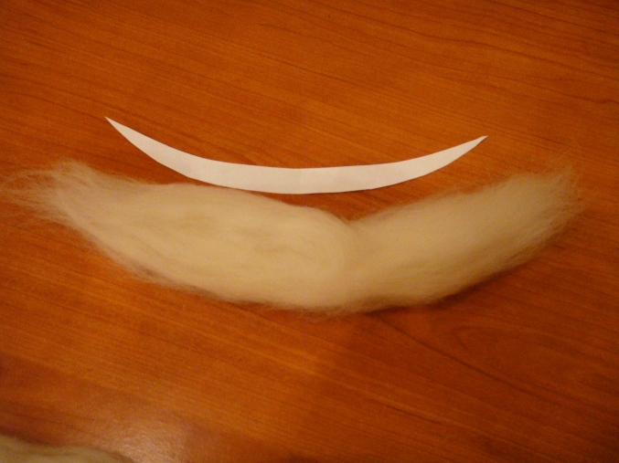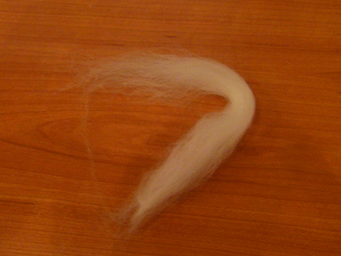 Предлагаю сразу свалять хвост (это очень легко). Отщипываем прядку шерсти, складываем попалам и идем к раковине.