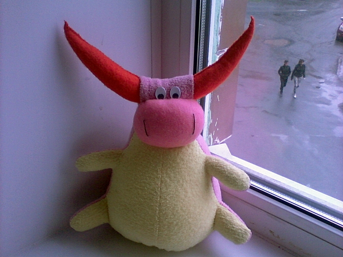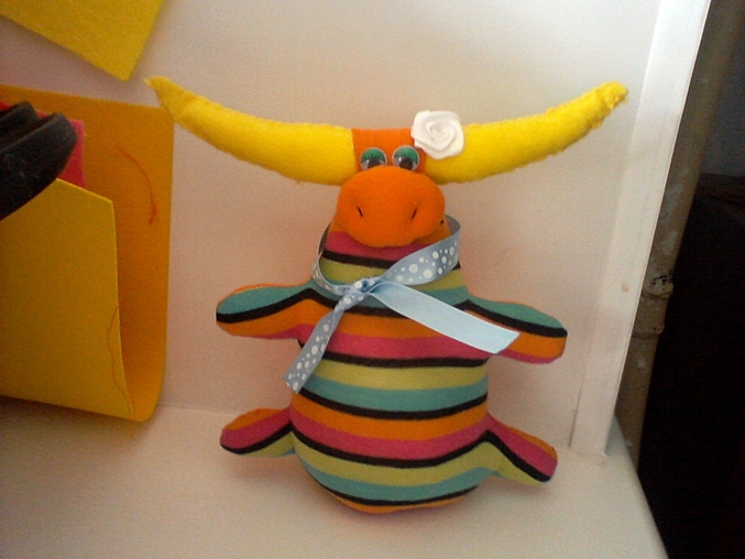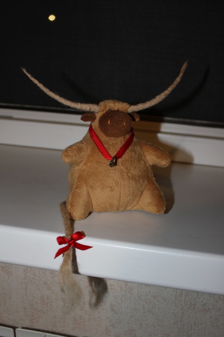 Я своей Буренке сшила сердечко и украсила рога маленьким цветком:) И сшила ей кавалера:))