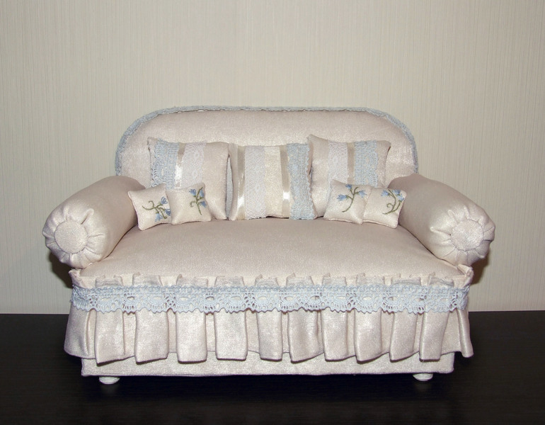 этот диванчик маленький, предназначен для куколок до 16 см. (миниатюра М 1:12)
