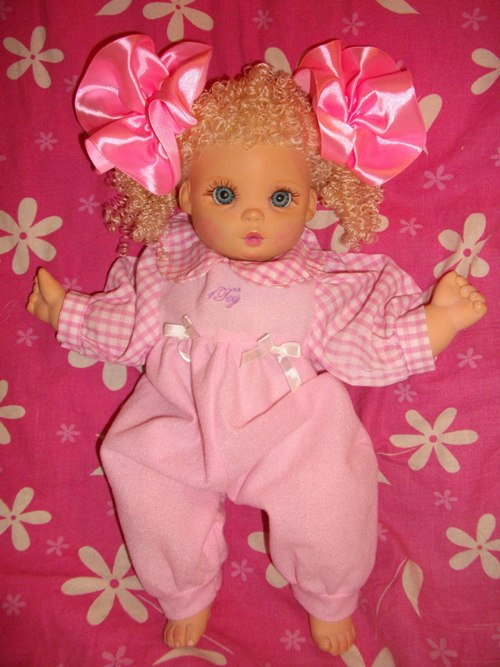 Реставрируем куколДевочки, привет всем! Вот такую малышку мне прислали на реставрацию. Полная реставрация Глории включила в себя замену и перепрошивку волос, замену глазок, ресничек, полная перекраска тела и головки акрилом для реборнинга LDC, пропитка гелем "эффект бархатной кожи", закрепление матт-варнишем, новая прорисовка губок, бровок, румянца, коленочек, локотков и пяточек))) Тельце было заменено на мягкое, но заказчица захотела старое тельце, поэтому заменим его на старое, тоже проработанное акрилом))) Костюмчик выбирали с дочей, перебрали кучу вариантов, остановились на розовом комбинезоне, но я думаю, что новая хозяюшка по имени Даша без труда обновит ее гардероб! Волосики Глории - синтетические кудри - прошиты по одному и закреплены изнутри, поэтому их можно мыть, менять прически и закалывать заколочки, которые Глории очень идут! Кто хочет посмотреть на результат полной реставрации Глории - добро пожаловать под кат! Ну а сама Глория очень скоро поедет в город Зеленокумск радовать свою маму!