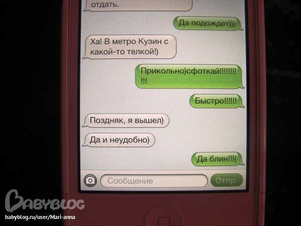 аа мне такая же приходила, ток мой писал " в метро встретил чувака который бьет беременную жену)" это Тиграна...сфоткал и прислал)