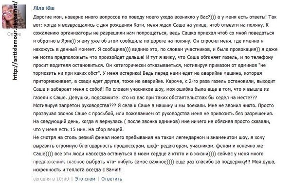 Да я бы тож вышла из газели!!!!)))))))))) Как у них интересно с Сашкой сложится. и че получается Сашка на проект не вернется?
