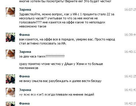 не верю в то,что народ стал активно голосовать ЗА иа...!!! брпед полнейший.юбольшая часть смотрящих Дом2 являются ее АНТИфанатами,за исключением слепых теточек,которые,согласна,не мало,нго тем неменее,АДЕКВАТНОГО народа все же больше,чем таких ....................................................................................!!!