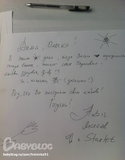 Леночка в Реалити-шоу "ДОМ-2" 13 лет От Малахова=) Посмотрите еще 20 записей на эту тему Отменить Ответить Egoramama детишенок на букаху похож=) 27.06.2012 Ответить Liya azor видать это девочка с косичками. 28.06.2012 Ответить наташа обожаю андрюшку!!!!!!!!!даже его кор.почерк.когда только у него детки будут? 27.06.2012 Ответить Виктория пишет он конечно, как курица - лапой!!! мог бы и постараться в пожелании))) 27.06.2012 Ответить Наталья просто запись в книге гостей с пожеланиями 27.06.2012 Ответить OkSana Прям креатив,пипец))) 26.06.2012 Ответить ♥KATRINA♥ ничего не понятно)) 26.06.2012 Ответить Вероника "В этот солнечный день, когда ваши сердца официально теперь вместе, жалаю семье Тарасовых- любви, здоровья, долларов и евриков!!! и конечно детишек. Рад, что вы построили свою любовь! Горько!" 26.06.2012 Ответить ♥KATRINA♥ спасибо))))) 26.06.2012 Ответить У ОЛИ ДРУГОЕ ПЛАТЬЕ? Гусевы гуляют на свадьбе Чаты Беременных Выберите чат: Январята-2026 Февралята-2026 Мартята-2026 Апрелята-2026 Майчата-2026 Июнята-2026 Июлята-2026 Августята-2026