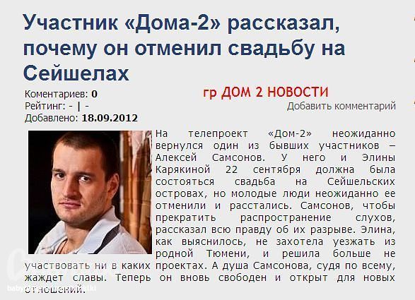 Маргарита в Реалити-шоу "ДОМ-2" 13 лет Истинная причина не состоявшейся свадьбы... Посмотрите еще 20 записей на эту тему Отменить Ответить Ирина Пипец как неожиданно 18.09.2012 Ответить ,,,, Так зимовать то надо где то , и жрачь покупать не надо, бюджетная еда в холодильнике. Фу а не мужик 18.09.2012 Ответить ольга Поди условия поставила идти работать , работать он может только куем. 18.09.2012 Ответить Е.В... Ну и шел бы по призванию... 19.09.2012 Ответить ольга Он и пришел ) ,сейчас много дур к нему пойдет , как говорят не заростет народная тропа ))) 19.09.2012 Ответить Е.В... И каждая будет свято верить, что С НЕЙ-ТО!!!! уж всеоооо будет по другому0)) 19.09.2012 Ответить ольга Да , да , да ) 19.09.2012 Ответить Евгения кто-то удивлен???????????????? 18.09.2012 Ответить Natali Сасмонов не для отношений идет, а за халявной едой в огромных колличествах 18.09.2012 Ответить ♡ ♡ ♡Юля ♡ ♡ ♡ Да кому он нужен то ещё.....потасканый как старый тапочек. 18.09.2012 Ответить Яся Да уж... Веская причина для отмены свадьбы..... 18.09.2012 Ответить Ждем,а потом может Элину еще вернут Ольга Бузова страстно болеет за мужа Чаты Беременных Выберите чат: Январята-2026 Февралята-2026 Мартята-2026 Апрелята-2026 Майчата-2026 Июнята-2026 Июлята-2026 Августята-2026