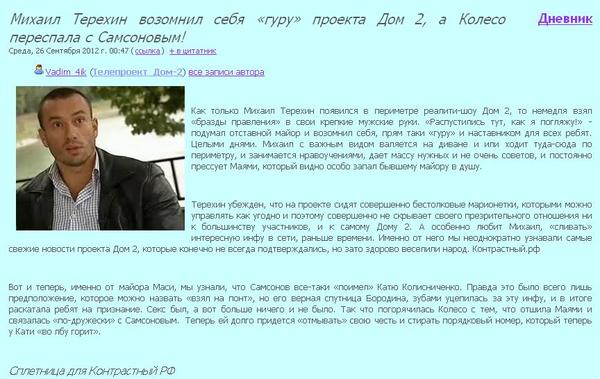 Михаил Терехин возомнил себя «гуру» проекта Дом 2, а Колесо переспала с Самсоновым!