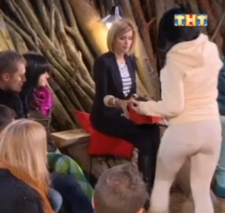 Нормальная попа, ну, поправилась, не прям что кошмар... ну, нет у человека вкуса не понимает она, что не красиво это, так у неё его никогда не было, так что нормальная, беременная Женька в плохой одежде)))