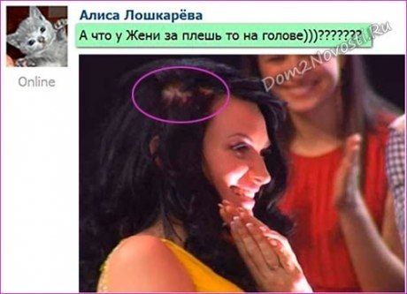ну что вы это не плеш, это просто злые завистники краску подтерли, она же самая красивая девочка в мире, просто ей все завидуют, она же и хозяйство ведет, и мужа ублажает, и с ребеночком сидит, и на лобное бегает, и в конкурсах выигравает, вообще девочка-мечта, нам можно только завидовать звезде)))))))