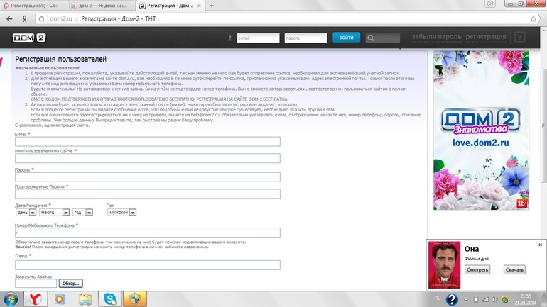 Личные вопросыДевочки,милые никак не получается зарегистроваться на сайте Дом2.может дело в телефоне ,незнаю,писала в тех подержку тоже ни ответа,ни привета. Может кто поможет,номер ,логин.электронка,пароль закину в личику.